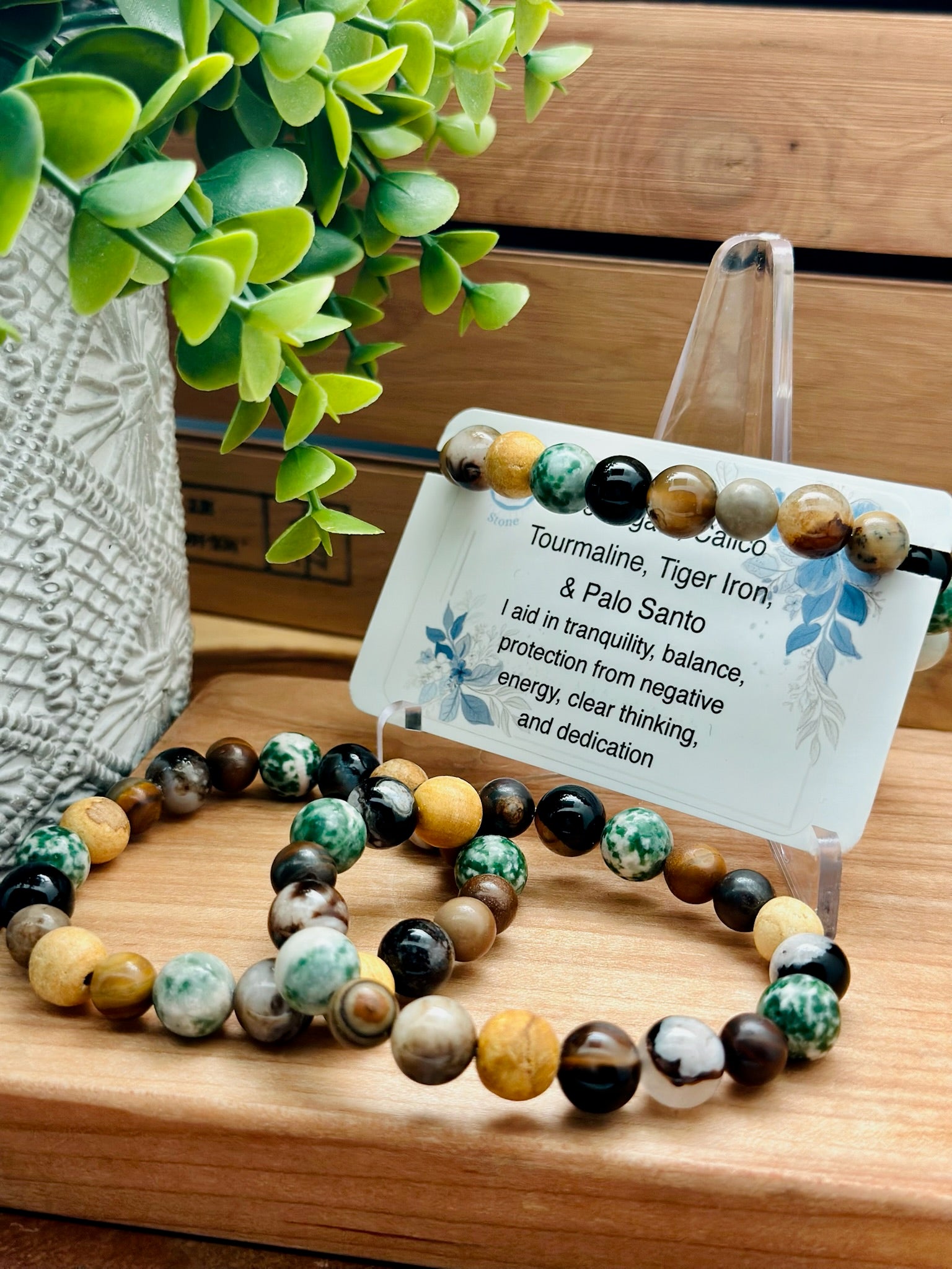 Tree Agate, Calico Tourmaline, Tiger Iron, And Palo Santo Bracelet