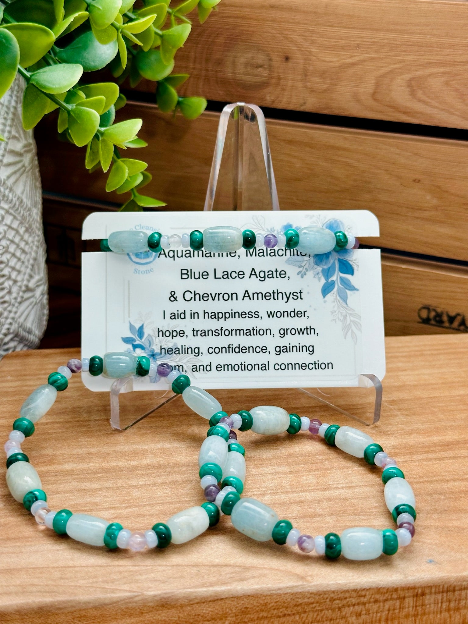 Aquamarine, Malachite, Blue Lace Agate, & Chevron Amethyst Bracelet