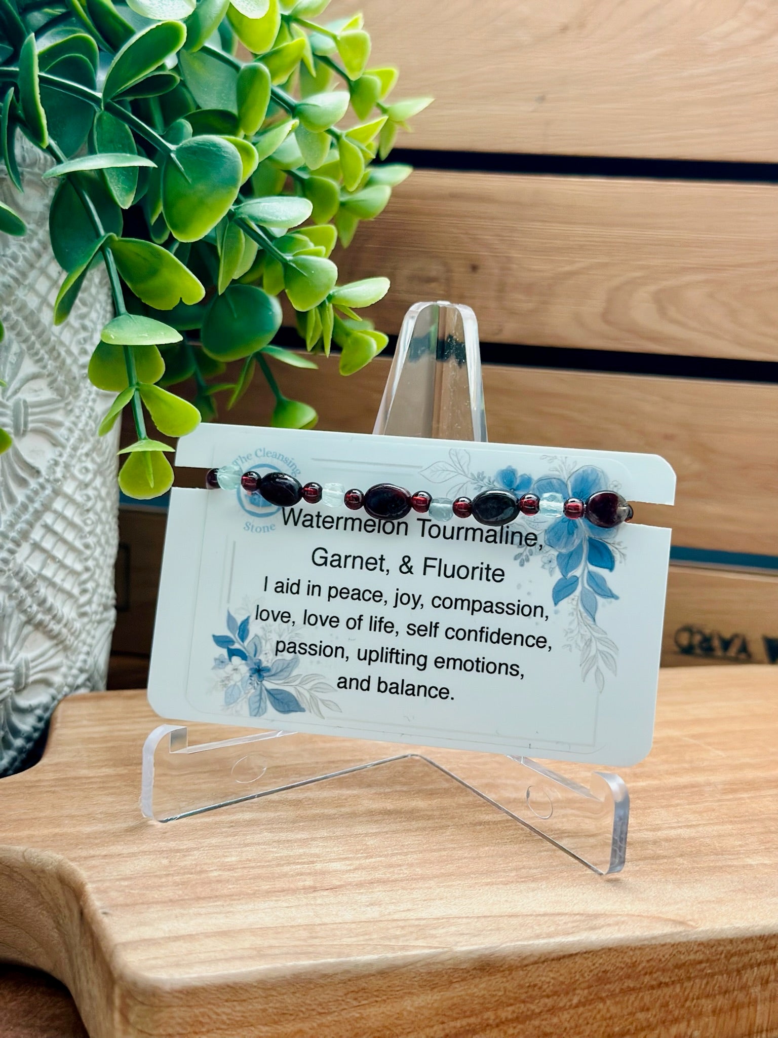 Watermelon Tourmaline, Garnet, and Fluorite Bracelet